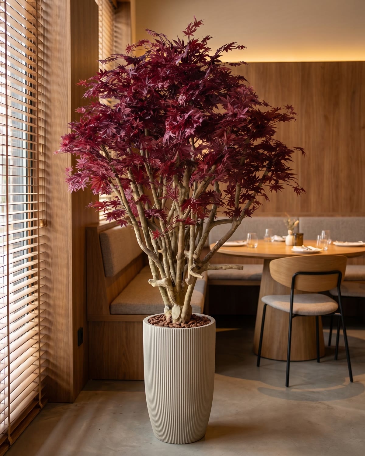 L’Acero Luxe Seminaturale su Tronco Tobago si distingue per la chioma ricca e armoniosa, composta da foglie finemente sagomate che creano un effetto naturale e leggero. Disponibile nei colori verde, fresco e luminoso, oppure rosso, intenso e avvolgente, dona carattere e profondità agli ambienti. Il tronco Tobago, caratterizzato da ramificazioni intricate e intrecciate, conferisce movimento e autenticità alla struttura, rendendo la pianta particolarmente scenografica ed elegante.