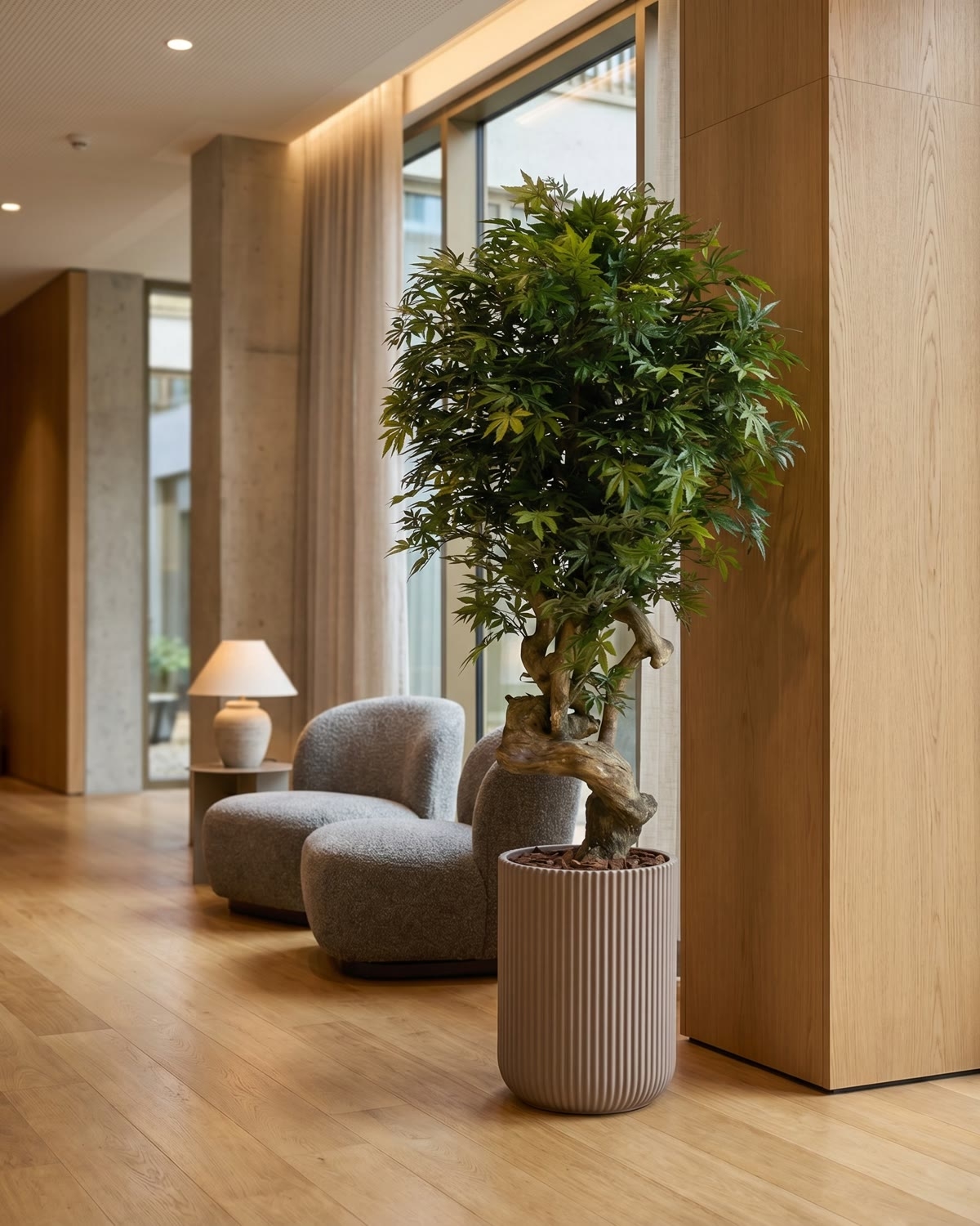 Il meraviglioso ramo di Acero può essere installato sul tronco Jamaica, un tronco naturale ricco di radiche, che richiama paesaggi esotici e atmosfere tropicali. È massiccio e maestoso. Il suo diametro può raggiungere i 15-20 cm e le sue ramificazioni si intrecciano in un unico insieme dall'aspetto selvaggio ma armonioso. Proprio come in natura, ogni tronco Jamaica è unico e si distingue per le sue caratteristiche che lo rendono inconfondibile nelle sue curve sinuose e nelle sue sfumature, nella posizione delle sue radiche e delle sue ramificazioni. I rami vengono installati uno ad uno dai nostri esperti artigiani che, in base alle vostre esigenze e richieste, daranno vita a un esemplare irripetibile: sarete voi, infatti, a scegliere l'altezza del vostro albero, il diametro e persino la forma della sua chioma. Una volta consegnato l'albero, non dimenticate di aprire i suoi rami e, infine, di modellarli e piegarli nella posizione desiderata.