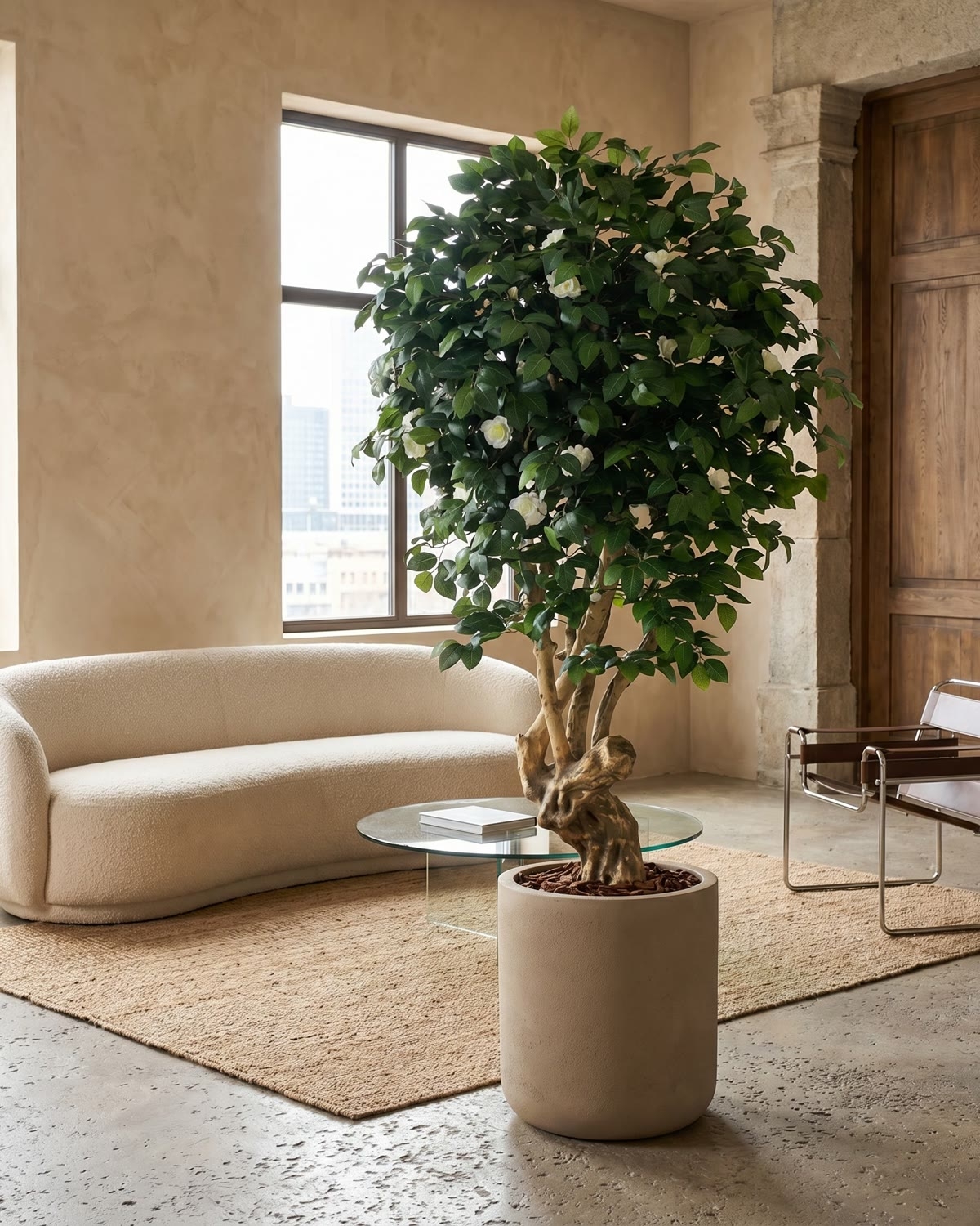 Lo splendido ramo di Camelia può essere montato sul tronco Jamaica, un tronco naturale ricco di nodi, che evoca paesaggi esotici e atmosfere tropicali. Si presenta massiccio e maestoso. Il suo diametro può raggiungere 15-20 cm e le sue ramificazioni si intrecciano in un tutt’uno selvaggio ma armonioso. Ciascuno tronco Jamaica è, proprio come in natura, unico e si distingue presentando caratteristiche proprie che lo rendono inconfondibile nelle sue curve sinuose, nelle sfumature di colore, nella posizione dei nodi e delle ramificazioni. I rami vengono installati uno a uno dai nostri esperti artigiani che, in base alle vostre esigenze e indicazioni, daranno così vita ad un esemplare irripetibile: potrete, infatti, anche scegliere l’altezza della vostra pianta, la misura del diametro della chioma e persino la sua forma. Una volta che la pianta sarà stata consegnata, non dimenticate, di aprirne i rami, e, in ultimo, di modellarli e piegarli nella posizione desiderata.