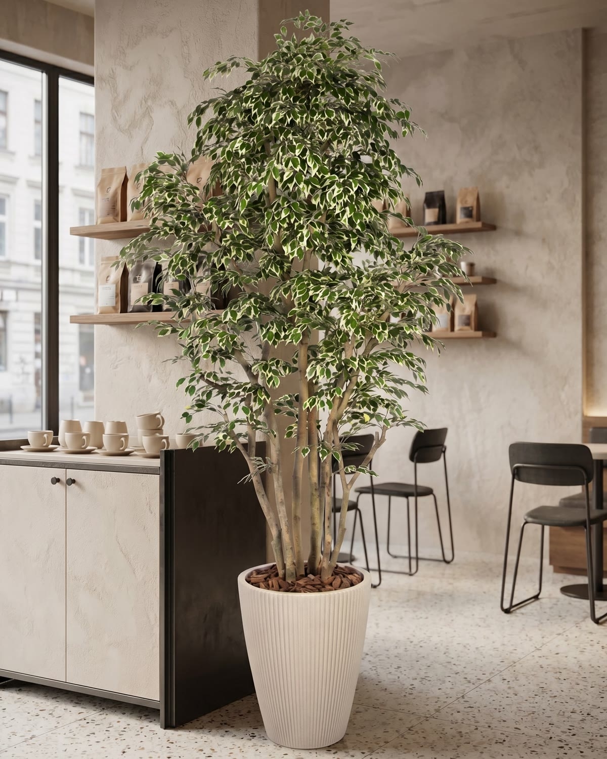 Scopri l’ampia gamma di Ficus Artificiali prodotti su misura! Le foglie, verdi o variegate, presentano colorazioni e nervature realistiche che variano a seconda della tipologia scelta: Ficus Benjamin, Ficus Hawaiian, Ficus Elegance, Ficus Luxe, Ficus Mini, Fic