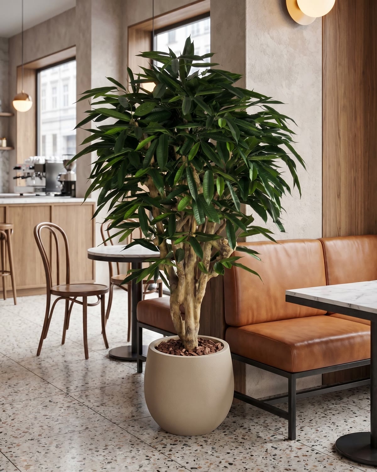Lo splendido ramo di Ficus Longifolia può essere montato sul tronco Mediterraneo, un tronco naturale i cui elementi caratteristici sono quelli tipici dello stile Mediterraneo: armonia, natura, luminosità, raffinatezza. Esso pare una vera scultura dalle forme sinuose e dalle ramificazioni evocative. Alcuni esemplari possono presentare nodi realmente artistici. Il suo diametro può raggiungere i 15 cm. Ciascuno tronco Mediterraneo è, proprio come in natura, unico e si distingue presentando caratteristiche proprie che lo rendono inconfondibile nelle sue curve sinuose, nelle sfumature di colore, nella posizione dei nodi e delle ramificazioni. I rami vengono installati uno a uno dai nostri esperti artigiani che, in base alle vostre esigenze e indicazioni, daranno così vita ad un esemplare irripetibile: potrete, infatti, anche scegliere l’altezza della vostra pianta, la misura del diametro della chioma e persino la sua forma. Una volta che la pianta sarà stata consegnata, non dimenticate, di aprirne i rami, e, in ultimo, di modellarli e piegarli nella posizione desiderata.