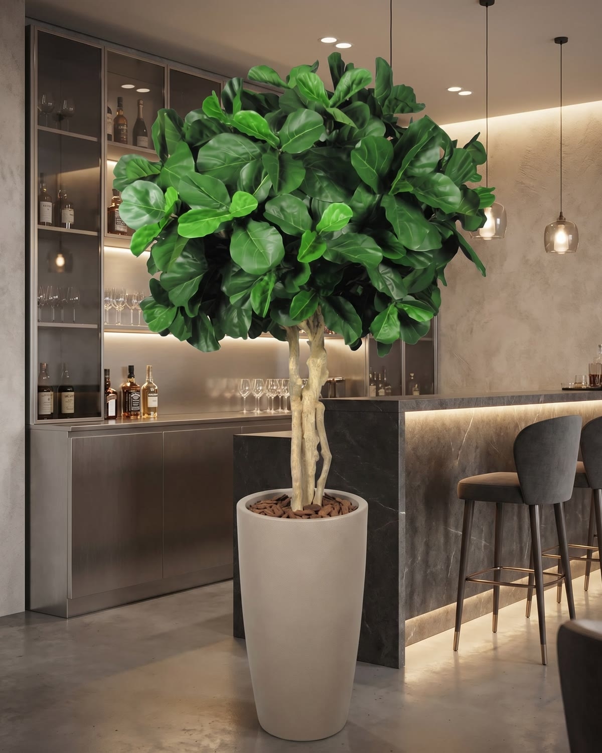 Il Ficus Lyrata cattura subito lo sguardo con le sue grandi foglie lucide a forma di lira, ricche di venature che donano ritmo e movimento. La sua silhouette slanciata porta negli interni un’eleganza naturale e luminosa, capace di trasformare ogni angolo in un piccolo angolo di quiete tropicale. Un tocco di design verde, sempre impeccabile e senza bisogno di cure.