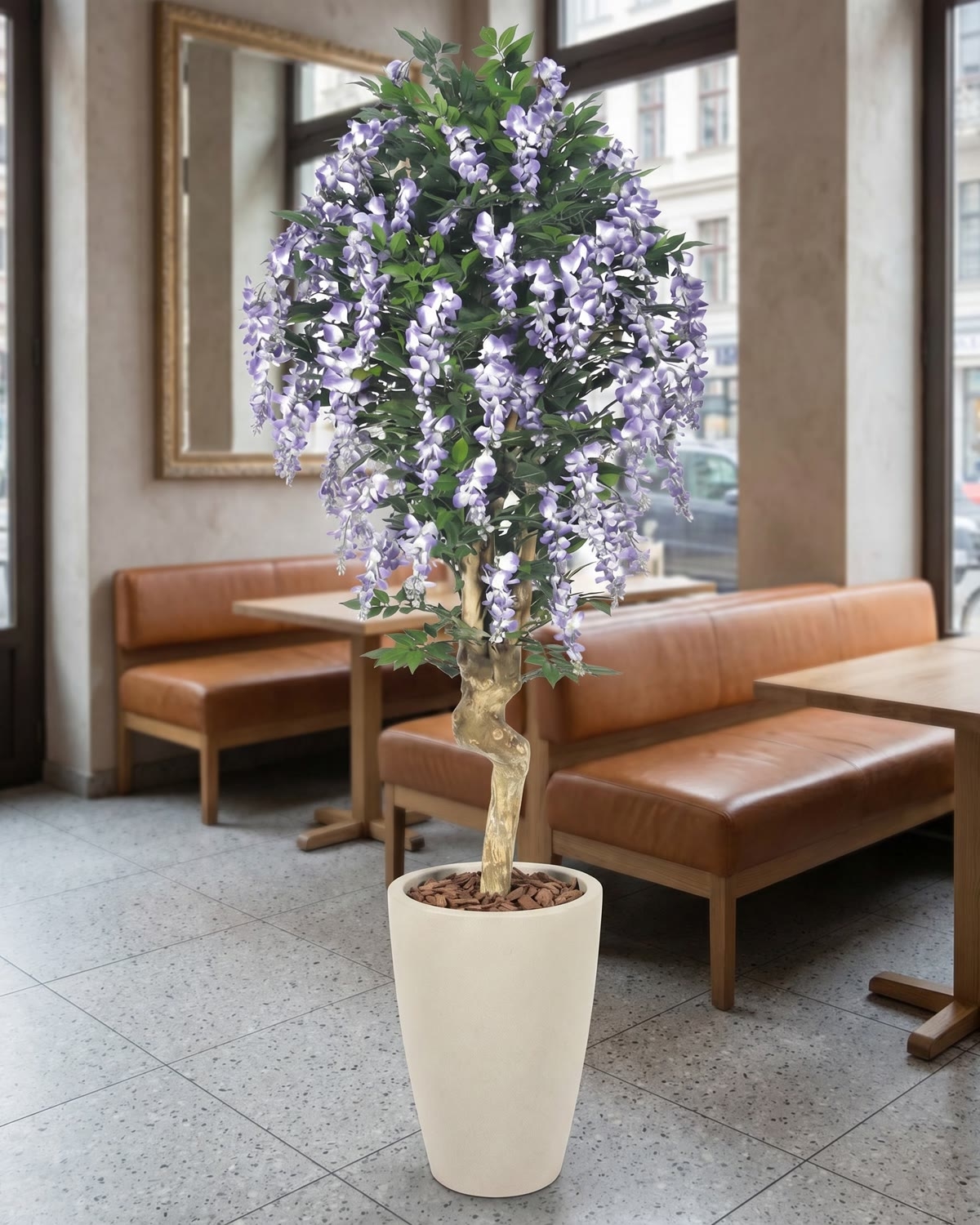 Lo splendido ramo di Glicine può essere montato sul tronco Mediterraneo, un tronco naturale i cui elementi caratteristici sono quelli tipici dello stile Mediterraneo: armonia, natura, luminosità, raffinatezza. Esso pare una vera scultura dalle forme sinuose e dalle ramificazioni evocative. Alcuni esemplari possono presentare nodi realmente artistici. Il suo diametro può raggiungere i 15 cm. Ciascuno tronco Mediterraneo è, proprio come in natura, unico e si distingue presentando caratteristiche proprie che lo rendono inconfondibile nelle sue curve sinuose, nelle sfumature di colore, nella posizione dei nodi e delle ramificazioni. I rami vengono installati uno a uno dai nostri esperti artigiani che, in base alle vostre esigenze e indicazioni, daranno così vita ad un esemplare irripetibile: potrete, infatti, anche scegliere l’altezza della vostra pianta, la misura del diametro della chioma e persino la sua forma. Una volta che la pianta sarà stata consegnata, non dimenticate, di aprirne i rami, e, in ultimo, di modellarli e piegarli nella posizione desiderata.