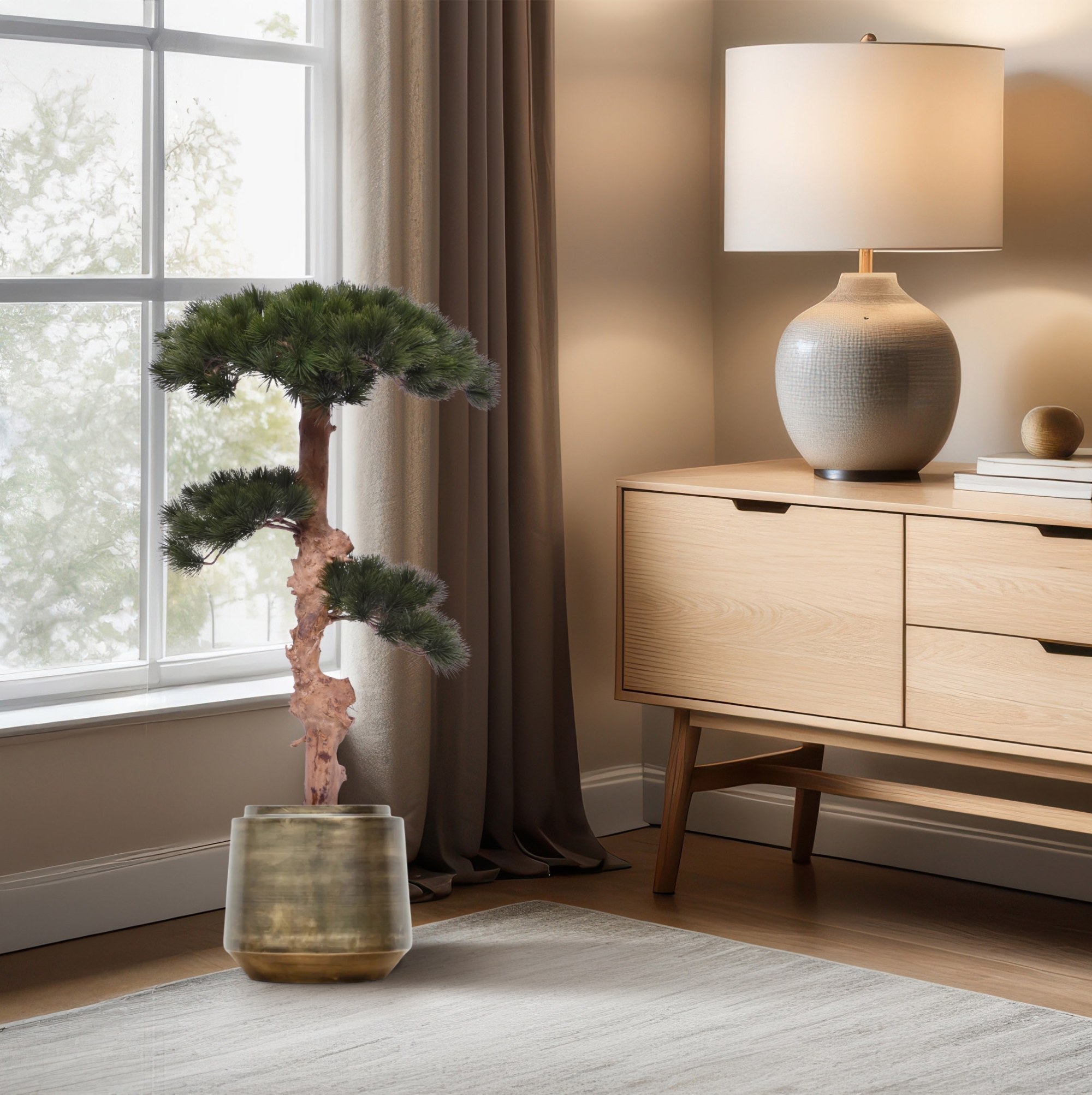 Questo Pinus Bonsai Artificiale Deluxe 110cm è una pianta artificiale realistica che aggiunge istantaneamente un’atmosfera orientale al tuo spazio interno. Questa pianta artificiale è un’esclusiva creazione di BM™ Luxury, disponibile solo da noi. La pianta si