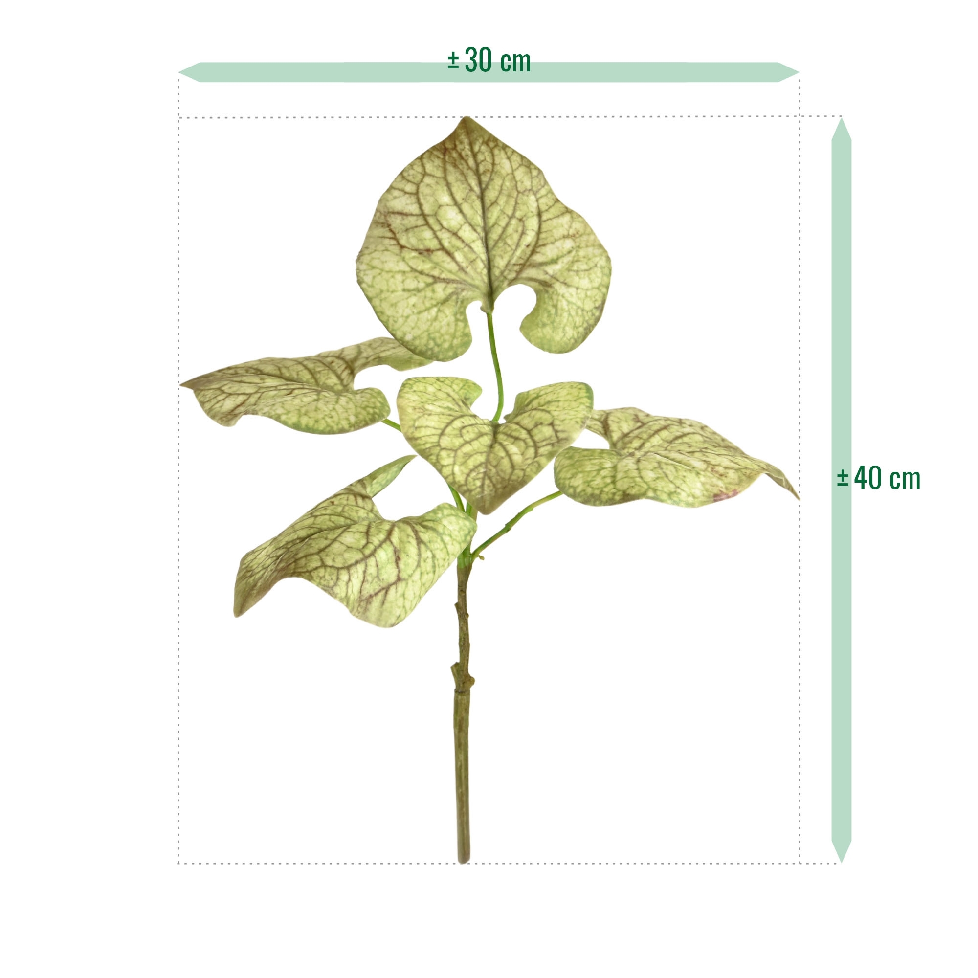 Se volete qualcosa di diverso dall'ordinario, questo è il bouquet giusto. Il bel colore verde-marrone della pianta artificiale illuminerà i vostri interni. Le foglie color crema/marrone hanno venature verdi. Abbinate il bouquet a uno dei nostri bellissimi vasi