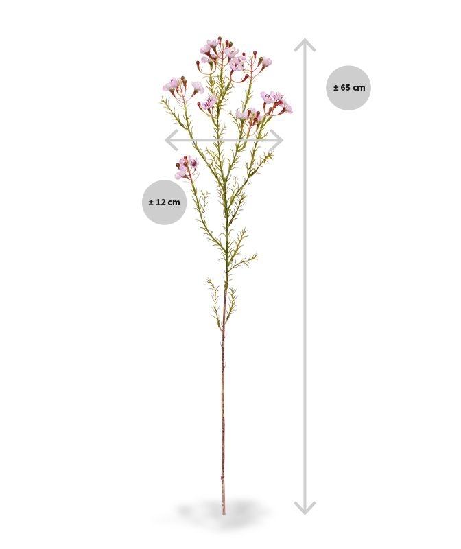 Quale bouquet rallegrerete con questo speciale ramo artificiale di fiori di cera (Chamelaucium) di colore rosa? Non per niente questo ramo che diffonde i suoi fiori in ombrelle è simbolo di un buon matrimonio in alcuni paesi! E ammettiamolo... quel rivestiment