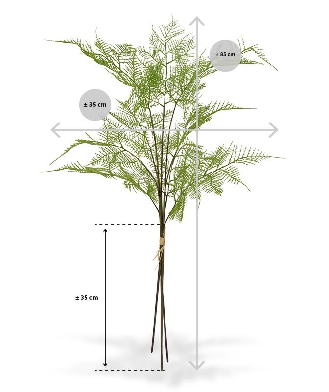 Questi rami artificiali di Asparagus sono stati ricreati in modo straordinariamente dettagliato. Si dice che sia un incrocio tra la pianta dell'asparago e una felce riccia. I rami di plastica sono composti da molti rami laterali diversi, tutti ricoperti da ram
