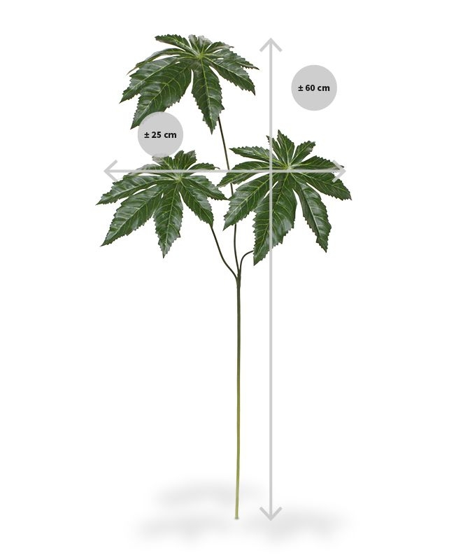 Ramo di Aralia 70 cm con 3 foglie (nota: le dimensioni reali differiscono dalla descrizione) Say.... Come utilizzerete questo ramo di Aralia naturale e robusto con 3 foglie? Taglierete le foglie alla rinfusa in modo da avere una base perfetta per costruire il