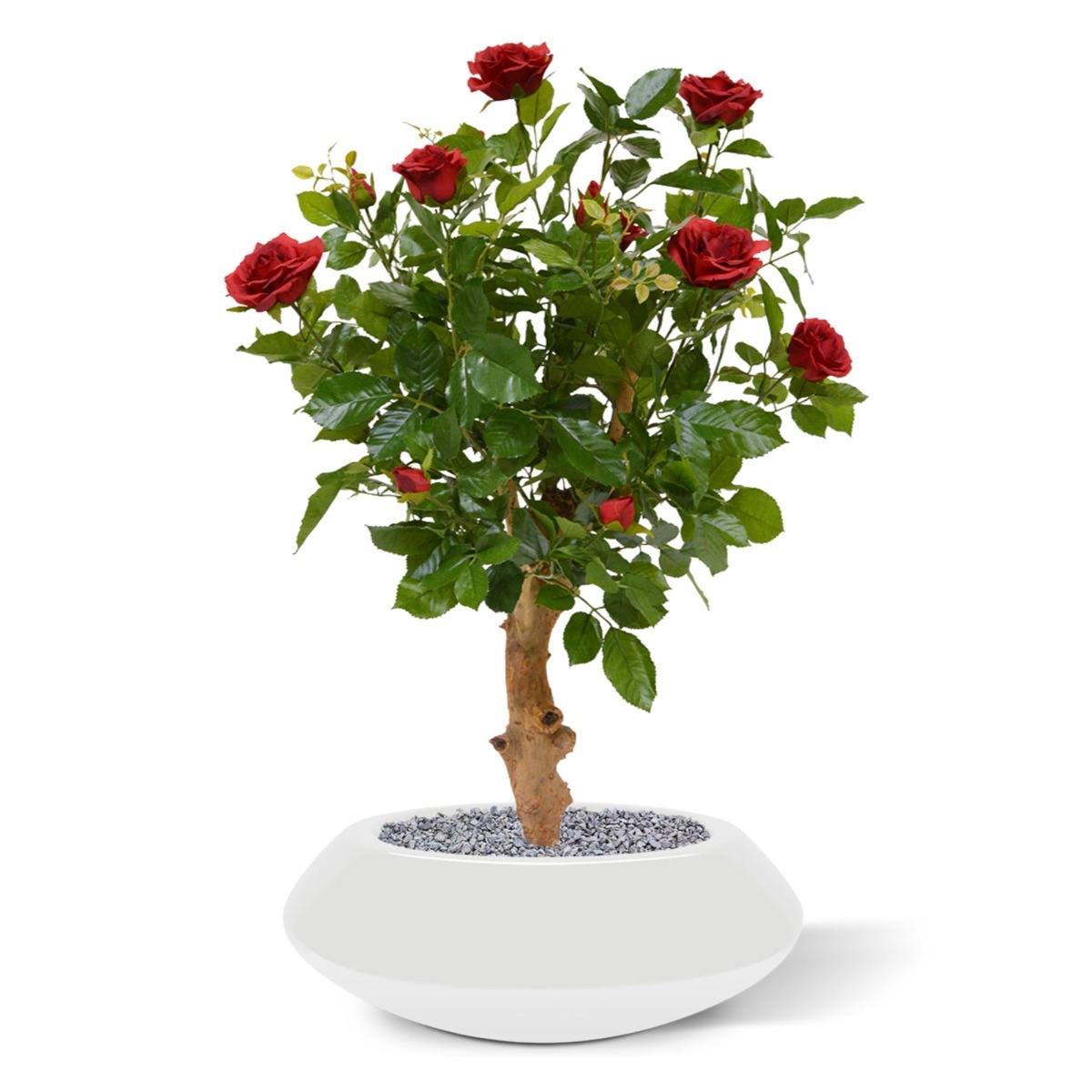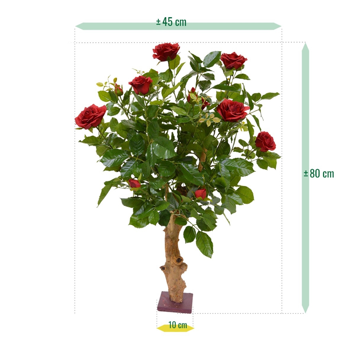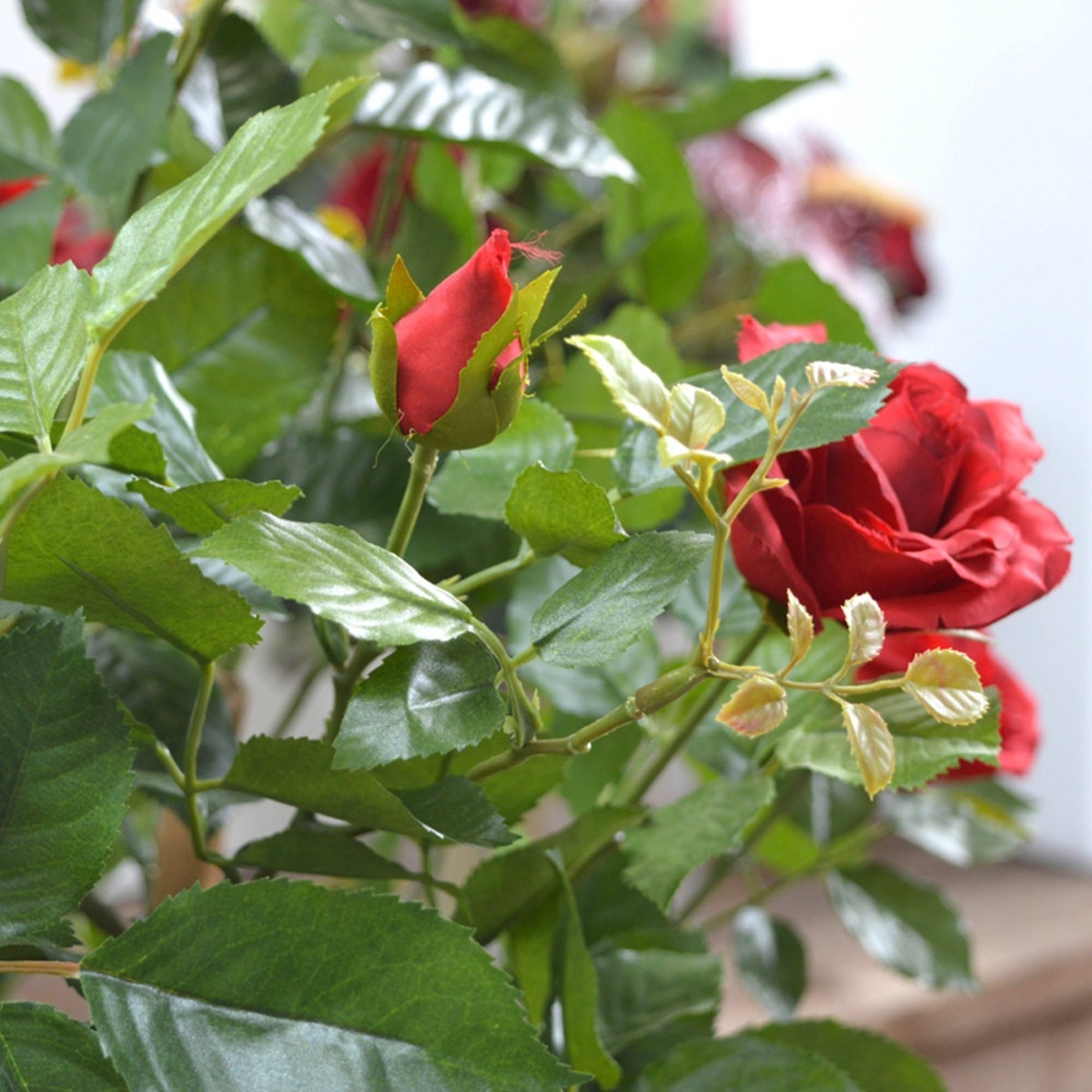 Con questa rosa artificiale a stelo fiorito, potrete creare rapidamente e facilmente una bella atmosfera. Questa pianta artificiale fedelmente ricreata è costruita su un gambo corto e spesso in vero legno, ha 8 bellissime rose artificiali di seta aperte e 8 bo