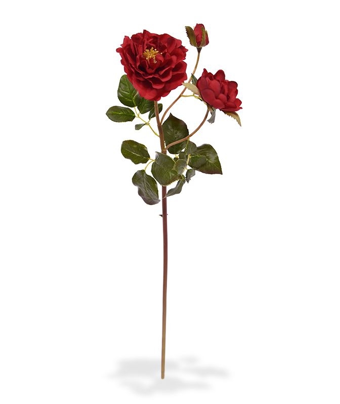 Il fiore artificiale rosso Ruffle Rose Branch è, ovviamente, il simbolo dell'amore. Il colore rosso ha qualcosa di chic. Il ramo di rosa ha tre boccioli di fiori in diverse fasi di crescita. Il fiore centrale è il più grande, ha un diametro di oltre 9 cm ed è
