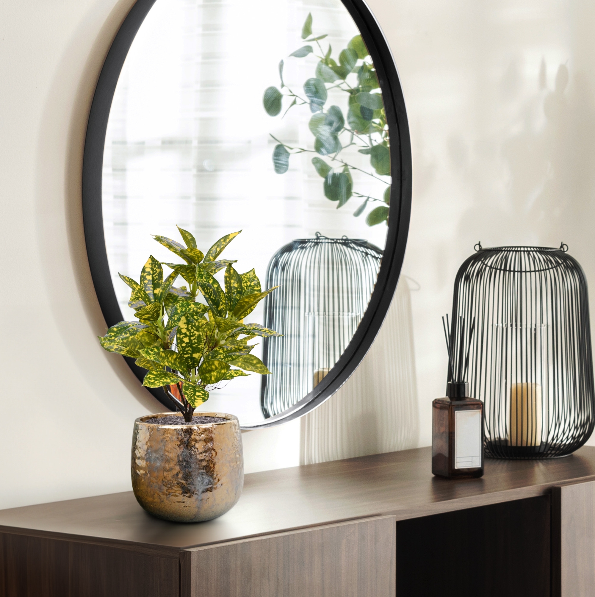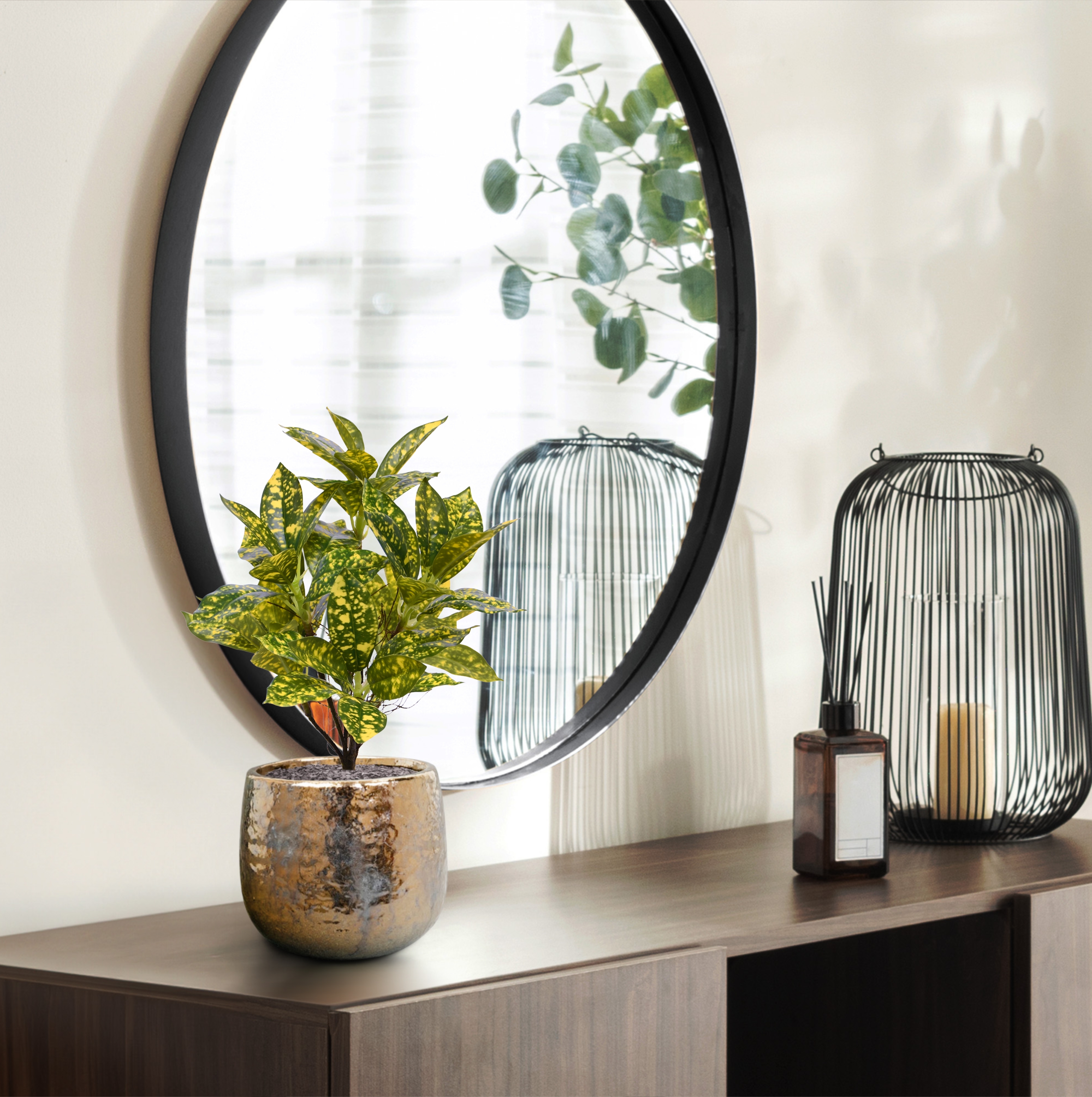 L'Acuba Japonica è una pianta artificiale di alta qualità che raggiunge un'altezza compatta di 35 cm con un'estensione di 25 cm, rendendola perfettamente adatta per spazi piccoli e uffici. Questa replica meticolosamente realizzata presenta foglie riccamente dettagliate che imitano la forma ampia e la texture lucida del suo corrispettivo naturale. Ogni foglia mostra sottili variazioni nei toni del verde, creando un'apparenza visiva vivace ma rilassante. Il gambo dell'Acuba Japonica è robusto e testurizzato, migliorando la sua presenza realistica e rendendola un'aggiunta senza tempo sia per gli ambienti moderni che per quelli tradizionali.