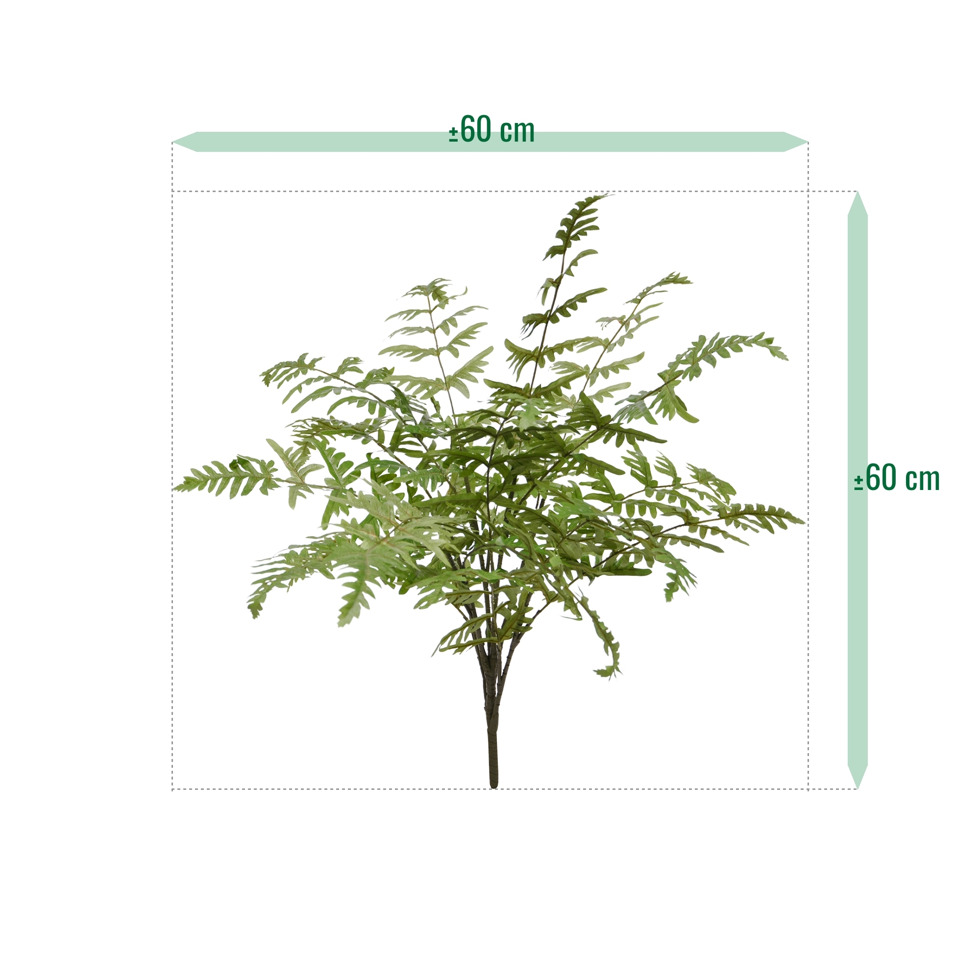 Create un'atmosfera verde e rigogliosa nei vostri interni con la felce artificiale Pteris Ensiformus! Con la sua impressionante altezza di 60 cm e larghezza di 60 cm, questa bellissima felce artificiale aggiunge un tocco di bellezza naturale a qualsiasi spazio