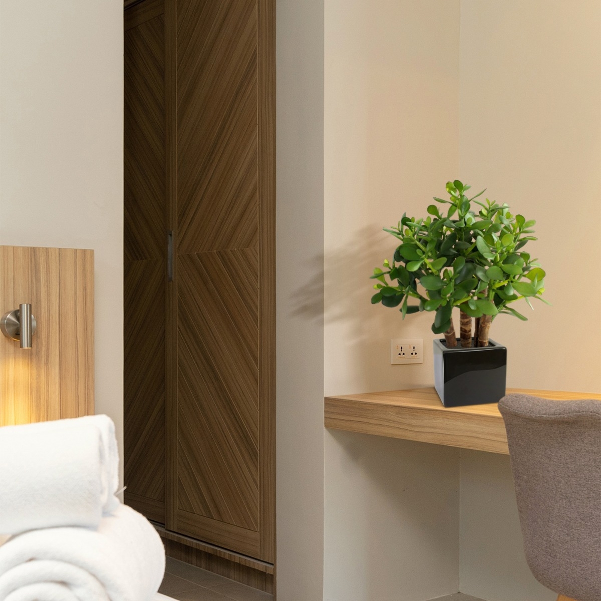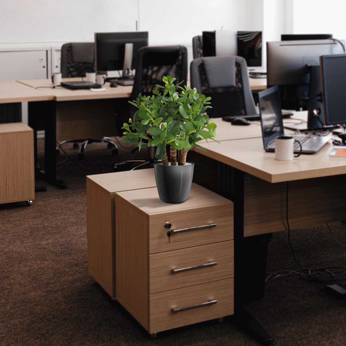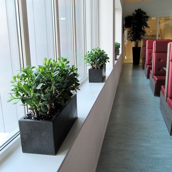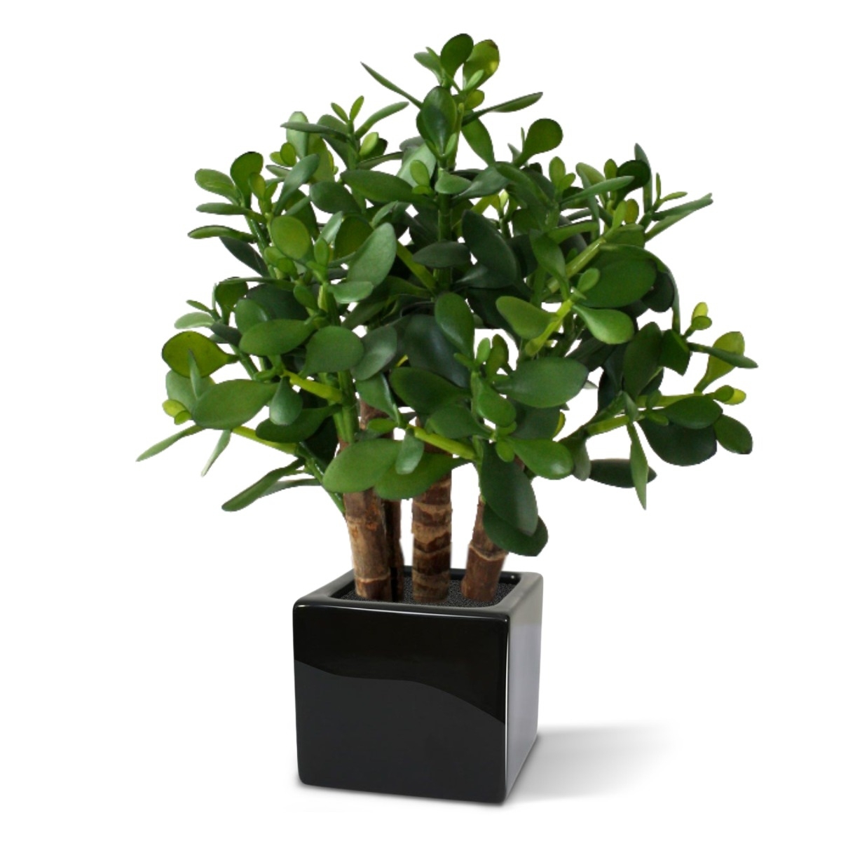 La pianta artificiale Crassula, con le sue foglie spesse e gli steli di legno vero, è una bella succulenta per la tavola o il davanzale. Come pianta singola in un vaso alto, o con diverse piante in fila, con questa pianta artificiale simile a un cactus si può