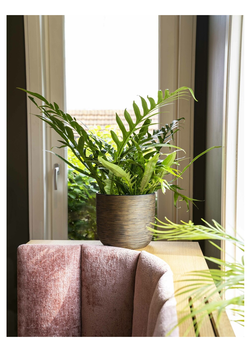 This handmade indoor flower pot has a special texture we call ‘Rib’. Capi Nature Rib pots have a special look due to the Rib texture. The Rib texture is inspired by braided reeds and their thin lines. The narrow, dancing lines provide a natural look as well as a playful touch to these pots.