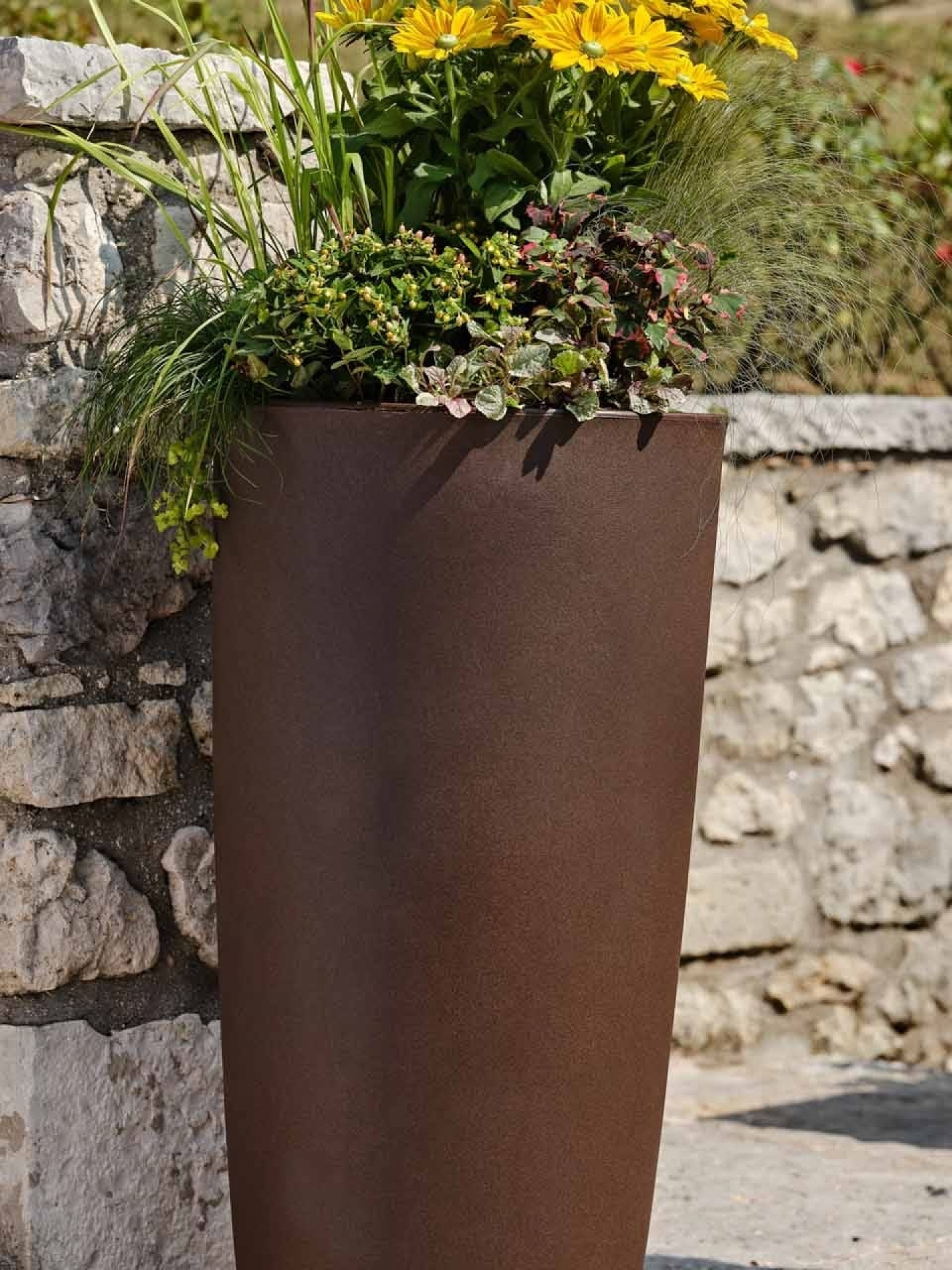 Il modello è pensato per progetti residenziali, retail e contract, con finiture che permettono di coordinare facilmente interni ed esterni e una gamma misure adatta sia a piante decorative sia ad allestimenti di maggiore presenza.