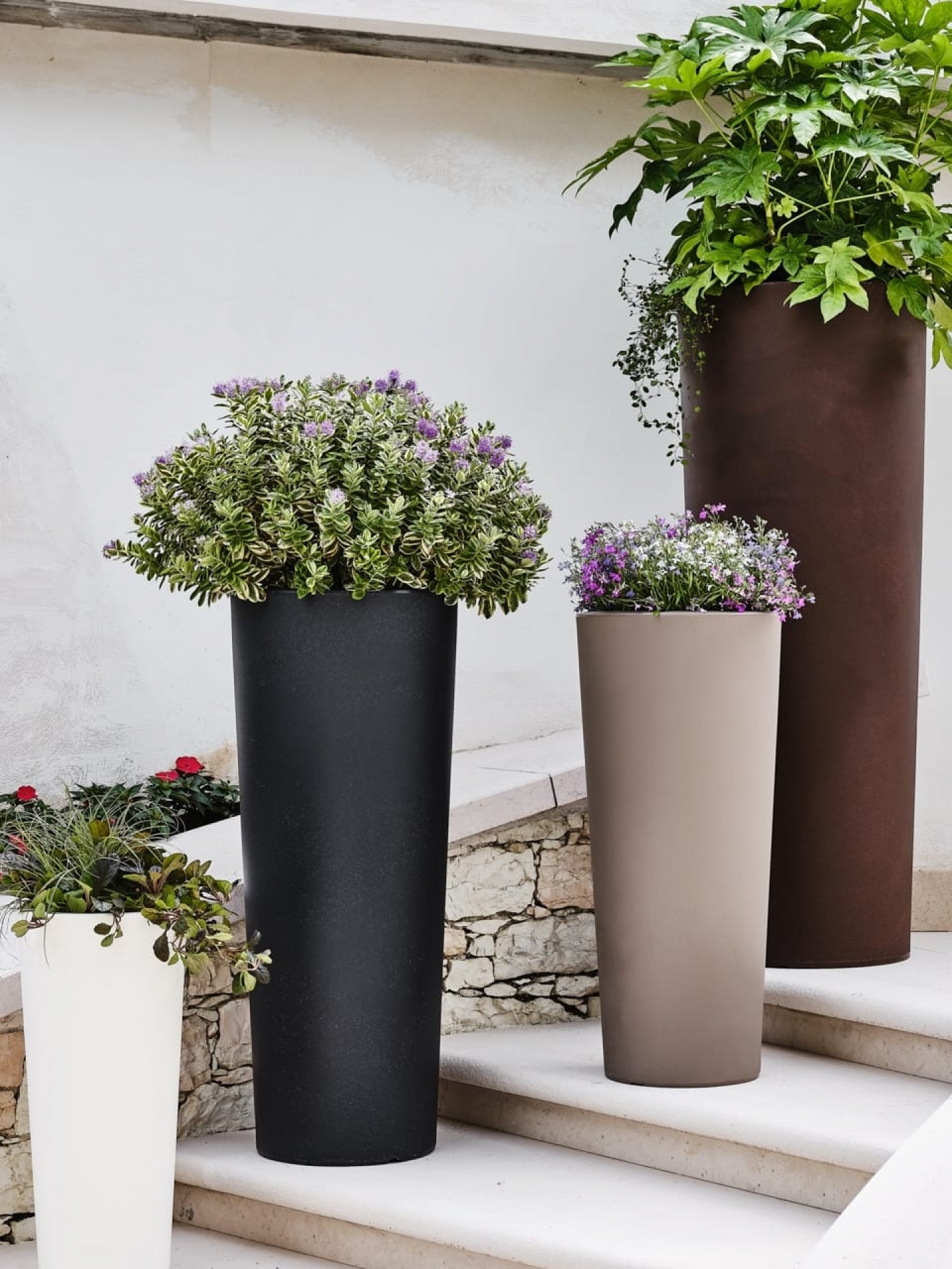 Il modello è pensato per progetti residenziali, retail e contract, con finiture che permettono di coordinare facilmente interni ed esterni e una gamma misure adatta sia a piante decorative sia ad allestimenti di maggiore presenza.