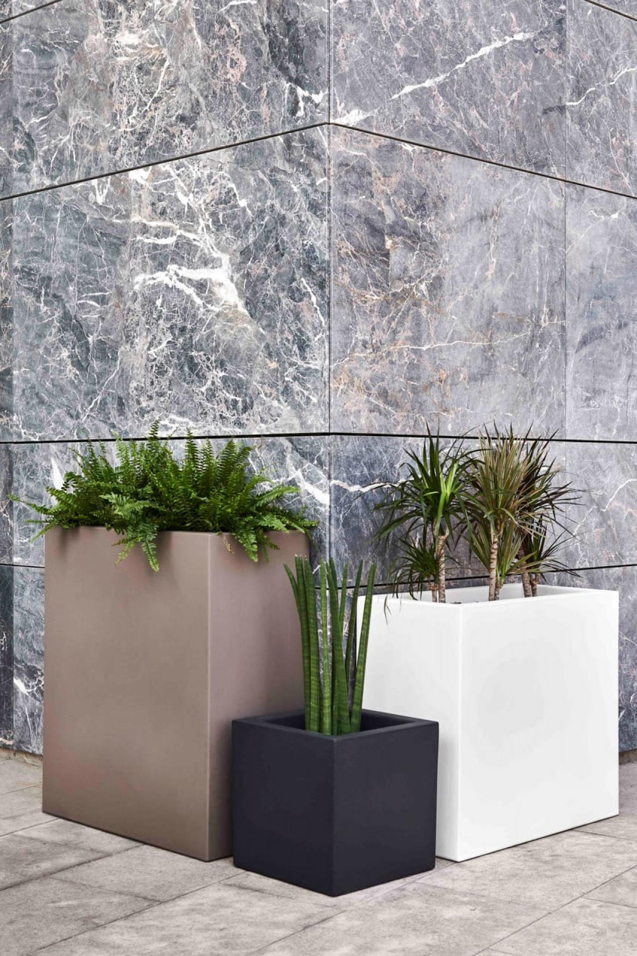 Il modello è pensato per progetti residenziali, retail e contract, con finiture che permettono di coordinare facilmente interni ed esterni e una gamma misure adatta sia a piante decorative sia ad allestimenti di maggiore presenza.