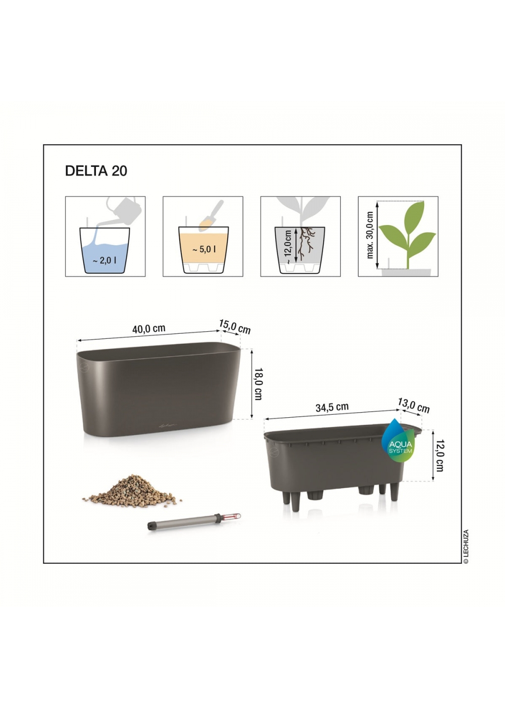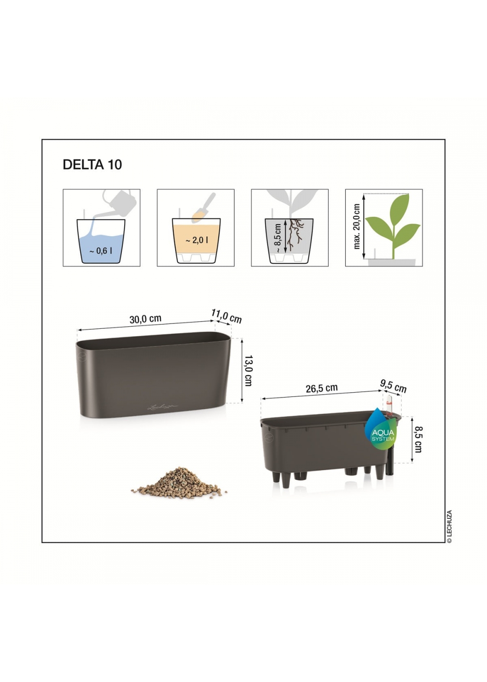 | Inserto per piante, dimensioni ca. | 26 x 9 cm | 34 x 12,5 cm |