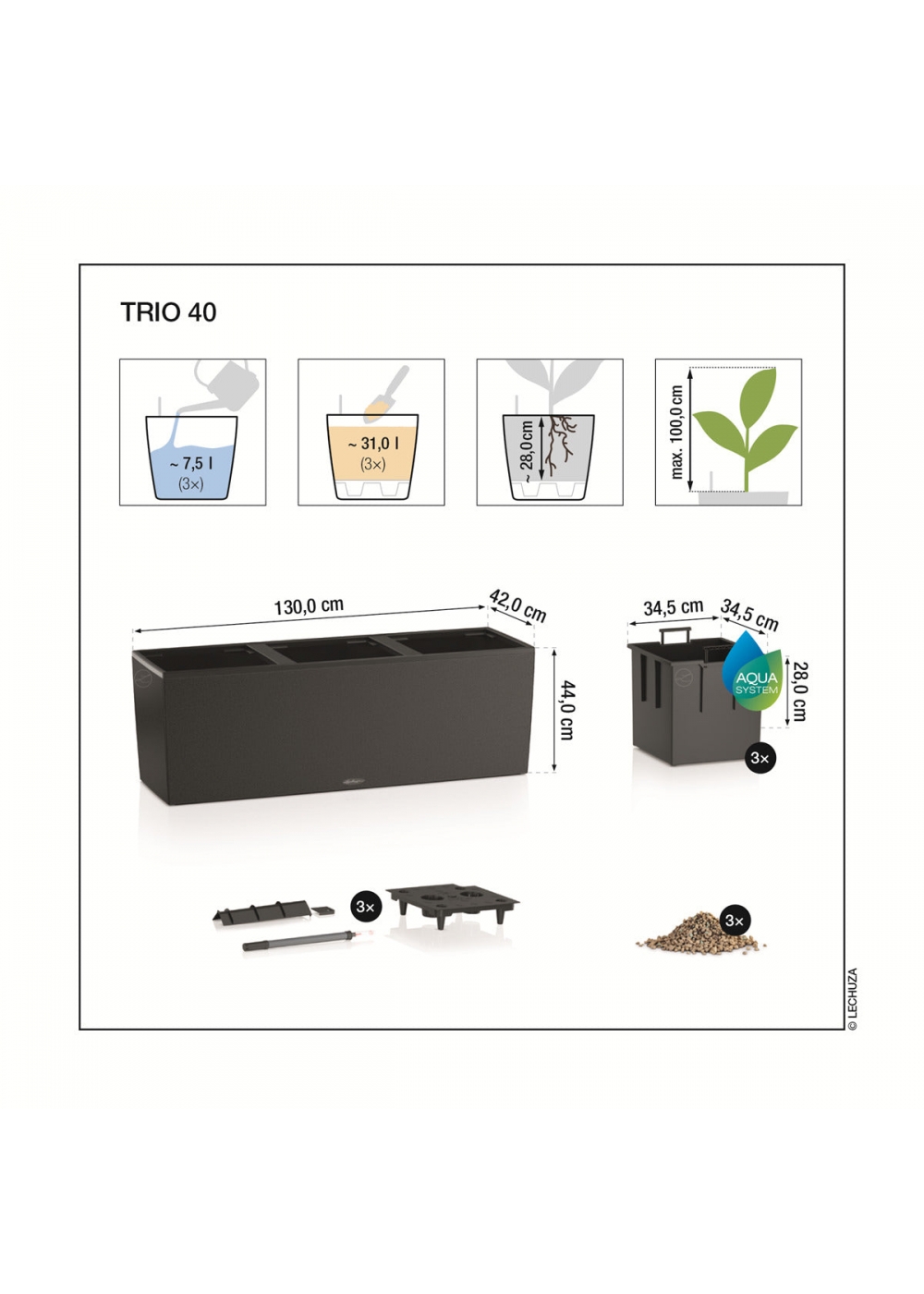 | Inserto per piante, dimensioni ca. | 25 x 25 cm (3x) | 34,5 x 34,5 cm (3x) |