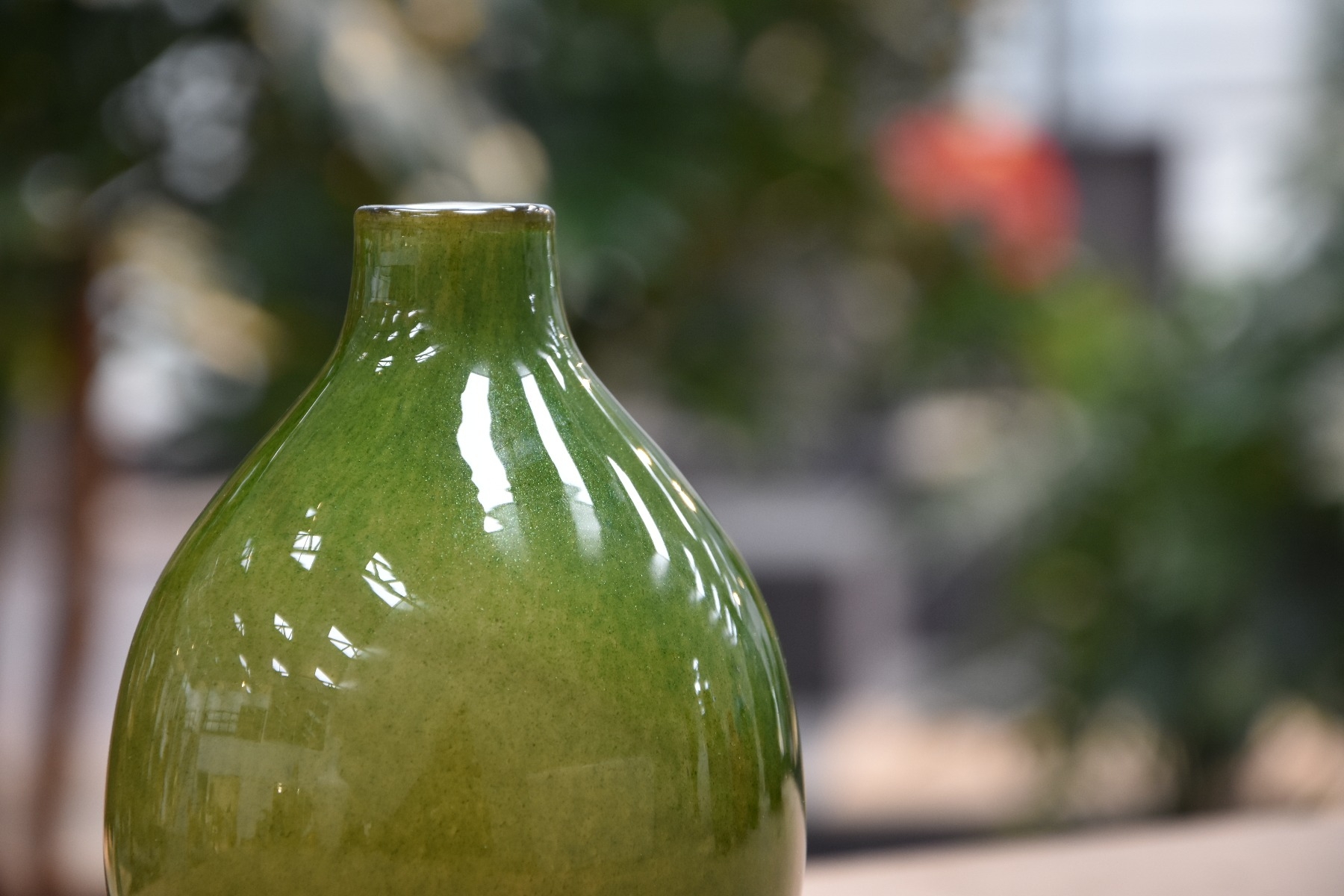 * De vaas is gemaakt van glas